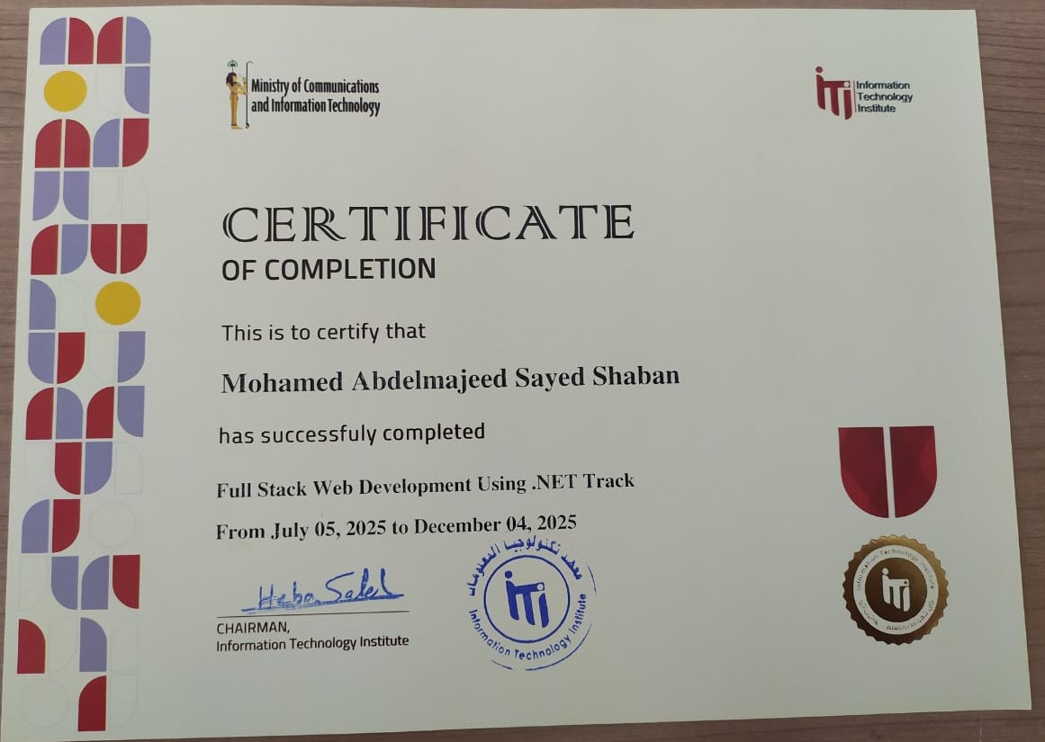 Full Stack Web Developer specializing in .NET technologies with strong experience in building modern and scalable web applications. I possess advanced skills in frontend development using Angular and backend development using ASP.NET Core and Entity Framework. Passionate about writing clean and maintainable code while following best programming practices such as SOLID Principles and Clean Architecture. I always strive to learn modern technologies and develop my skills to deliver innovative and effective software solutions.